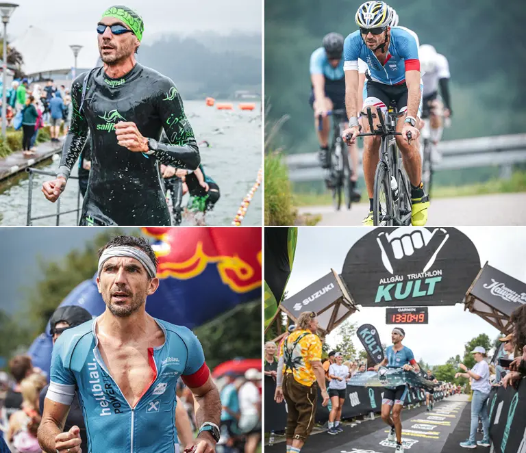 Gottseidank kühlte von Samstag auf Sonntag der See noch ein wenig ab und daher durfte ich den Neoprenanzug benutzen. Ohne Neo peilte ich eine Schwimmzeit von 50 Minuten an für die 1900 Meter Schwimmstrecke. Der Startschuss im wahrsten Sinne des Wortes um 08:10 Uhr schickte mich in den wunderschönen Alpsee. Es war wie immer ein wildes Gerangel. Ich berührte einen Schwimmer oder er mich was ihn dazu bewegte, mich mit seiner rechten Hand an der Hüfte zu packen und mich auf die Seite zu stoßen. Überall waren Hände und Füße. Ich konnte erst nach der ersten Boje mein „Tempo“ schwimmen. Nach überraschenderweise nur 40 Minuten konnte ich aus dem Wasser emporsteigen. Danach suchte ich einen Herrn mit grüner Badehaube und einem starken rechten Arm aber ich konnte ihn nicht finden 😊
